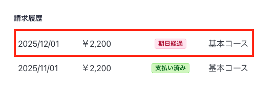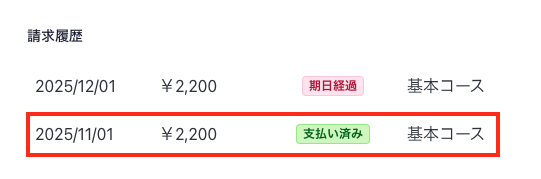 「請求履歴」から、該当のお支払い項目をクリックします。