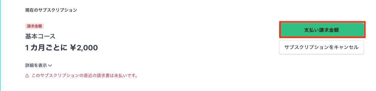 <支払い請求金額>ボタン、または「請求履歴」から該当のお支払い項目をクリックします。